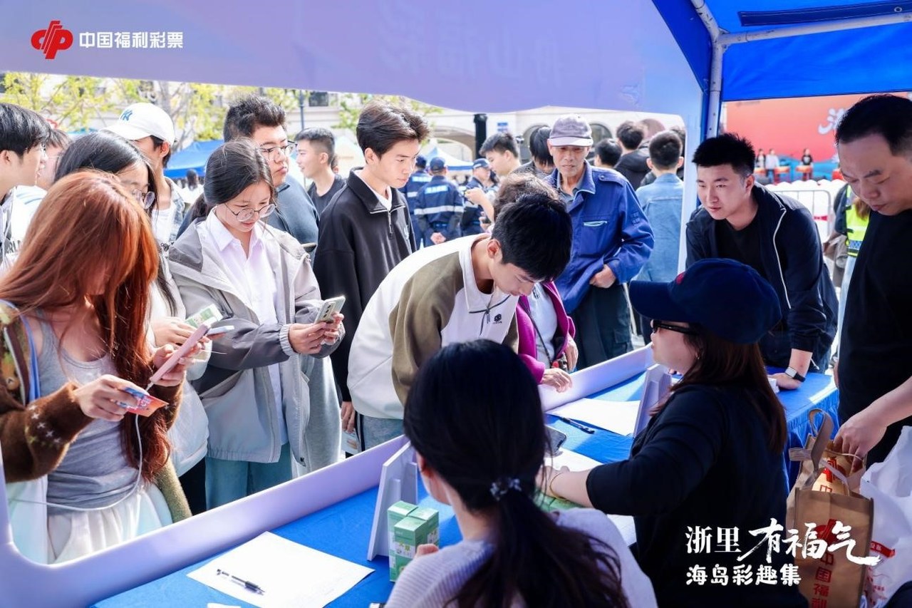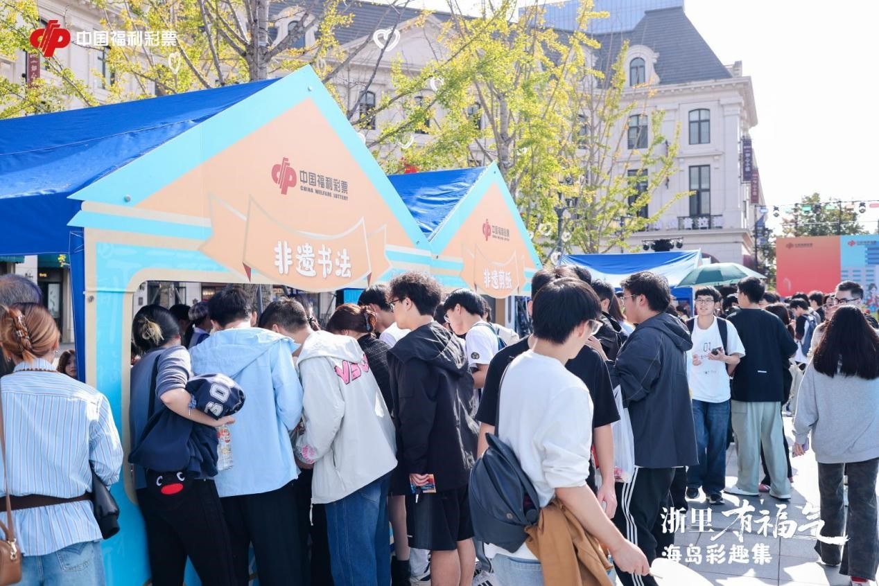 在活动主场外围,以蓝色为主色调打造的互动游戏区、打卡区、公益市集和当地传统文化体验区吸引着现场所有人,大家沉浸在欢乐互动的氛围中,在浙江福彩简介墙前,大家了解了浙江福彩在保障民生方面作出的重要贡献以及福彩公益金的使用成果;在福彩双色球奖池、福彩大富翁等游戏中感受福彩快乐文化,收获各种福彩文创小礼物。大家一边玩乐一边打卡拍照,通过自己的社交媒体与亲朋好友分享这份快乐。活动现场,20位福彩“爱心驿站”销售员化身现场公益志愿者,将“爱心驿站”暖心服务带到现场,让现场广大参与者感受到了来自“爱心驿站”的温度。