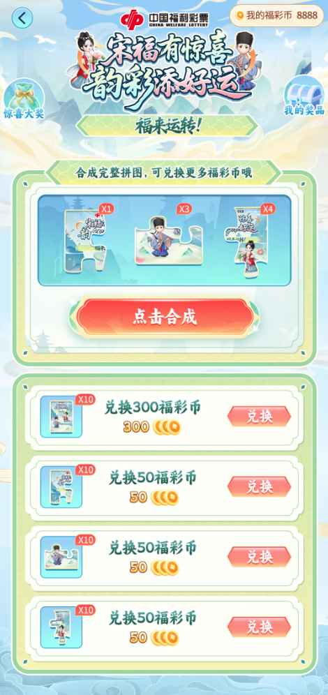 每天登录即可获得50福彩币,玩得越多,机会越多!