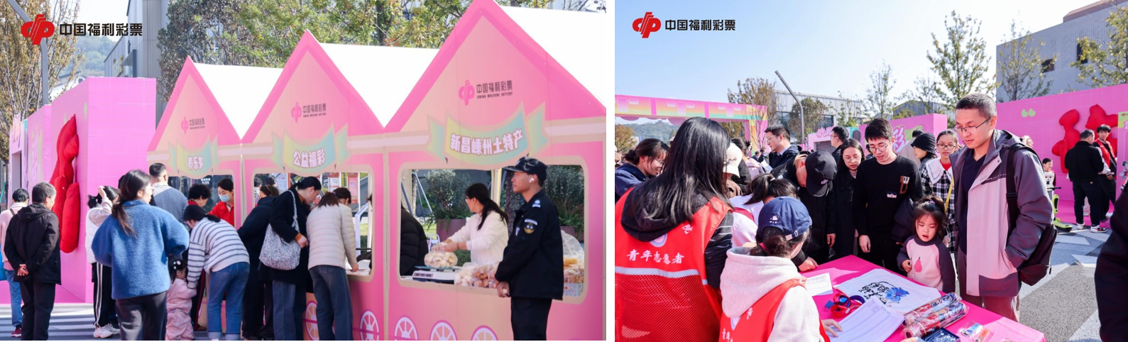 在活动主场外围,浙江福彩专门打造的互动游戏区、打卡区、公益市集和当地传统文化体验区吸引着现场所有人。大家沉浸在欢乐互动的氛围中,在浙江福彩简介墙前,了解了浙江福彩在保障民生方面作出的重要贡献以及福彩公益金的使用成果;在福彩双色球奖池、佳人投注站、福彩友约等游戏中感受福彩快乐文化,收获各种福彩文创小礼物。大家一边玩乐一边打卡拍照,通过自己的社交媒体与亲朋好友分享这份快乐,也能在活动中寻找志趣相投的好友。活动现场,20余位福彩“爱心驿站”销售员化身现场公益志愿者,将福彩“爱心驿站”暖心服务带到现场,让现场广大参与者感受到了来自福彩“爱心驿站”的温度。