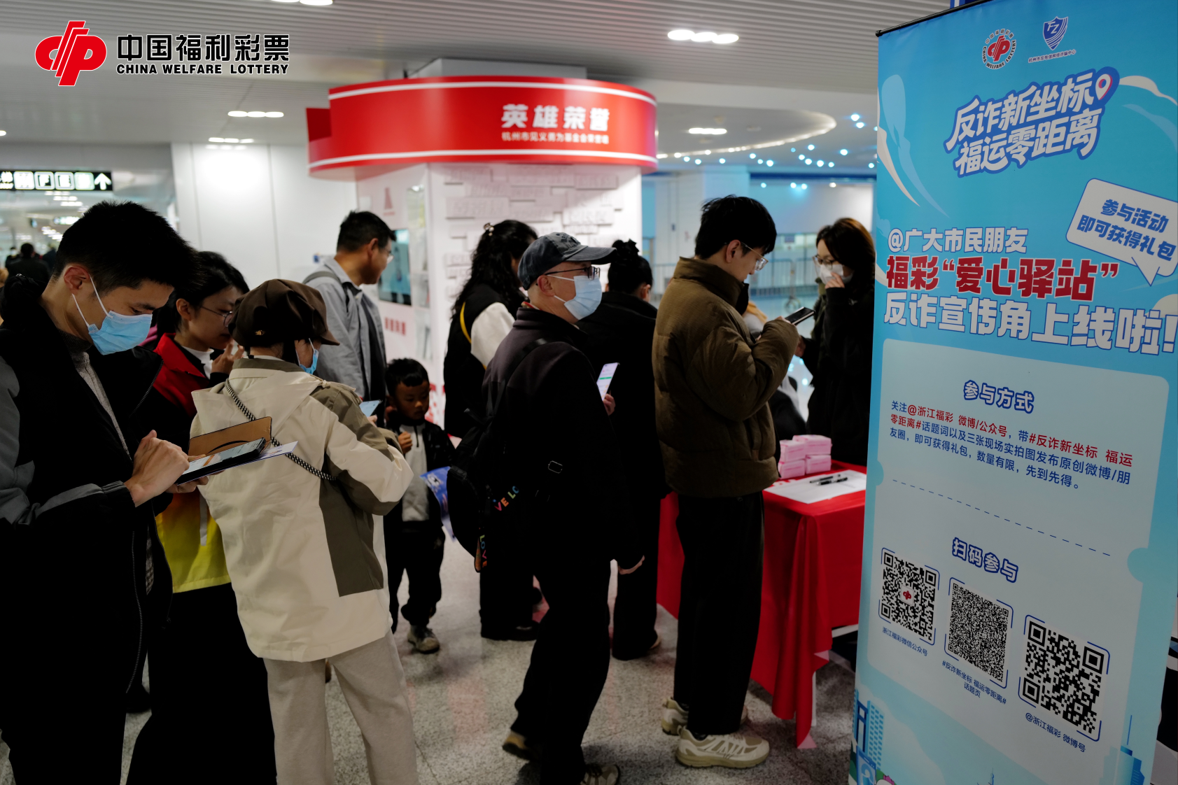 12月4日,在西湖文化广场地铁站的国家宪法日主题宣传活动中,浙江省福利彩票管理中心联合杭州市反诈中心、杭州市公安局地铁分局,共同举办福彩“爱心驿站”反诈宣传活动,将“反诈宣传角”从线下福彩“爱心驿站”延伸至地铁场景,以“公益+反诈”的创新模式,为市民送上“平安+温暖”的双重守护。本次活动是继11月首批爱心驿站“反诈宣传角”授牌后,浙江福彩联手杭州反诈中心拓展宣传阵地的又一重要举措。