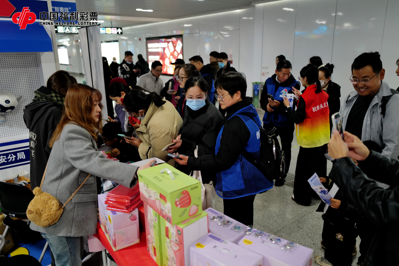为让公益宣传更具参与感,浙江福彩为市民精心准备了内容丰富的公益礼包,包括福彩刮刮乐、反诈宣传册、定制钥匙扣、笔记本及生活用品等,让市民在守护自身财产安全的同时,加深对福彩公益的认知。“公益场景+反诈宣传+地铁互动”的新模式,让公益宣传可触、可感、可参与,现场气氛热烈有序。