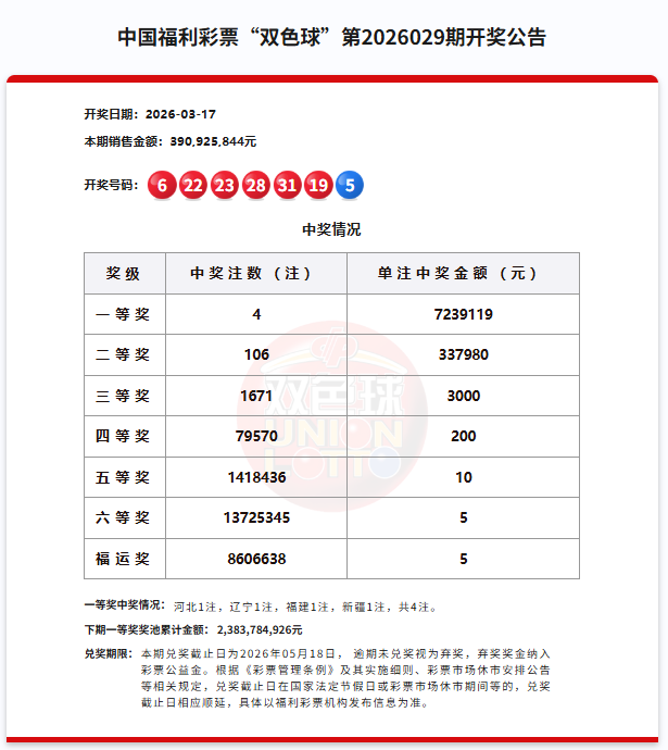 福彩双色球 幸运直通车|双色球第2026029期开奖:双色球送福运,860万份“福运奖”已送达